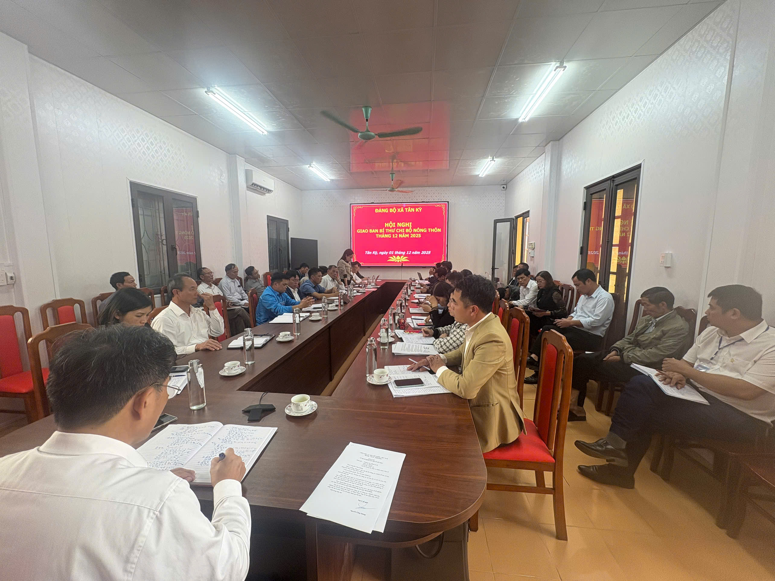 Chiều 1/12, Thường trực Đảng uỷ xã Tân Kỳ tổ chức Hội nghị giao ban Bí thư chi bộ tháng 12/2025. Đồng chí Nguyễn Duy Thành - Phó Bí thư Thường trực Đảng ủy dự và chủ trì hội nghị.
