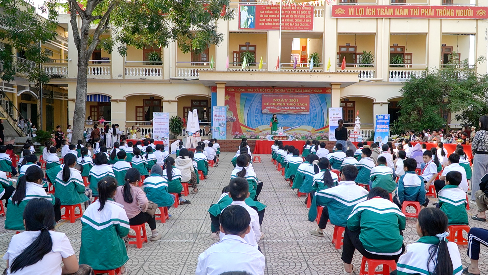 Ngày hội diễn ra sôi nổi với nhiều hoạt động ý nghĩa như trưng bày, xếp sách nghệ thuật và thi kể chuyện theo sách. Mỗi khối lớp tham gia 1 tiết mục, thông qua hình thức giới thiệu sách, kể chuyện kết hợp đóng kịch, tiểu phẩm, tái hiện sinh động những câu chuyện về truyền thống cách mạng, tinh thần yêu nước và sự hy sinh anh dũng của các thế hệ cha anh trong các cuộc kháng chiến bảo vệ Tổ quốc. Thông qua Ngày hội, nhà trường đã tạo sân chơi bổ ích, góp phần khơi dậy niềm đam mê đọc sách, phát triển kỹ năng thuyết trình, làm việc nhóm cho học sinh; đồng thời giáo dục các em lòng biết ơn, tự hào dân tộc và ý thức giữ gìn, phát huy truyền thống lịch sử của quê hương, đất nước.