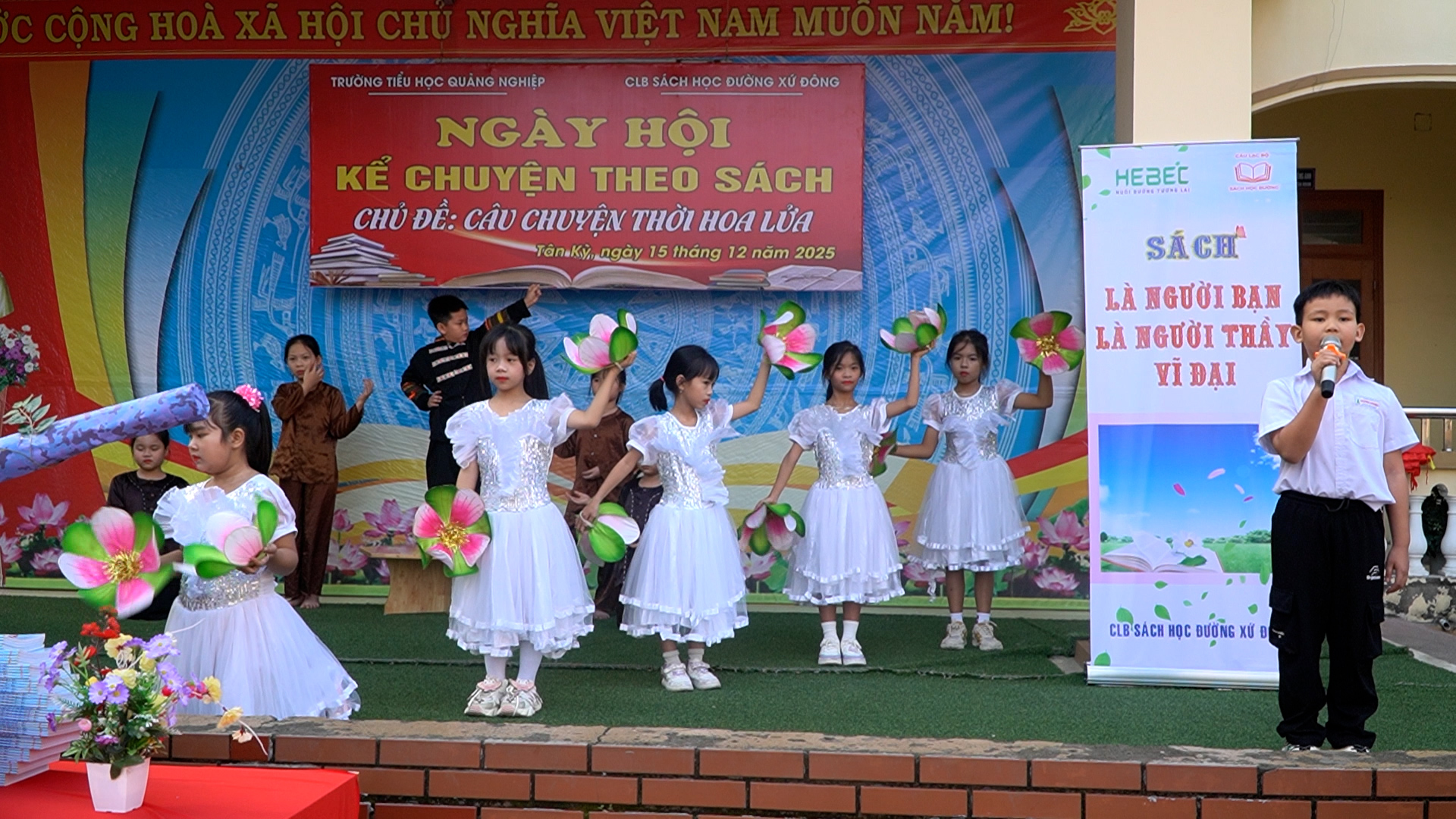 Chào mừng kỷ niệm Ngày thành lập Quân đội nhân dân Việt Nam 22/12/2025, ngày 15/12, Trường Tiểu học Quảng Nghiệp phối hợp với Câu lạc bộ Sách học đường Xứ Đông tổ chức Ngày hội kể chuyện theo sách với chủ đề “Câu chuyện thời hoa lửa”.