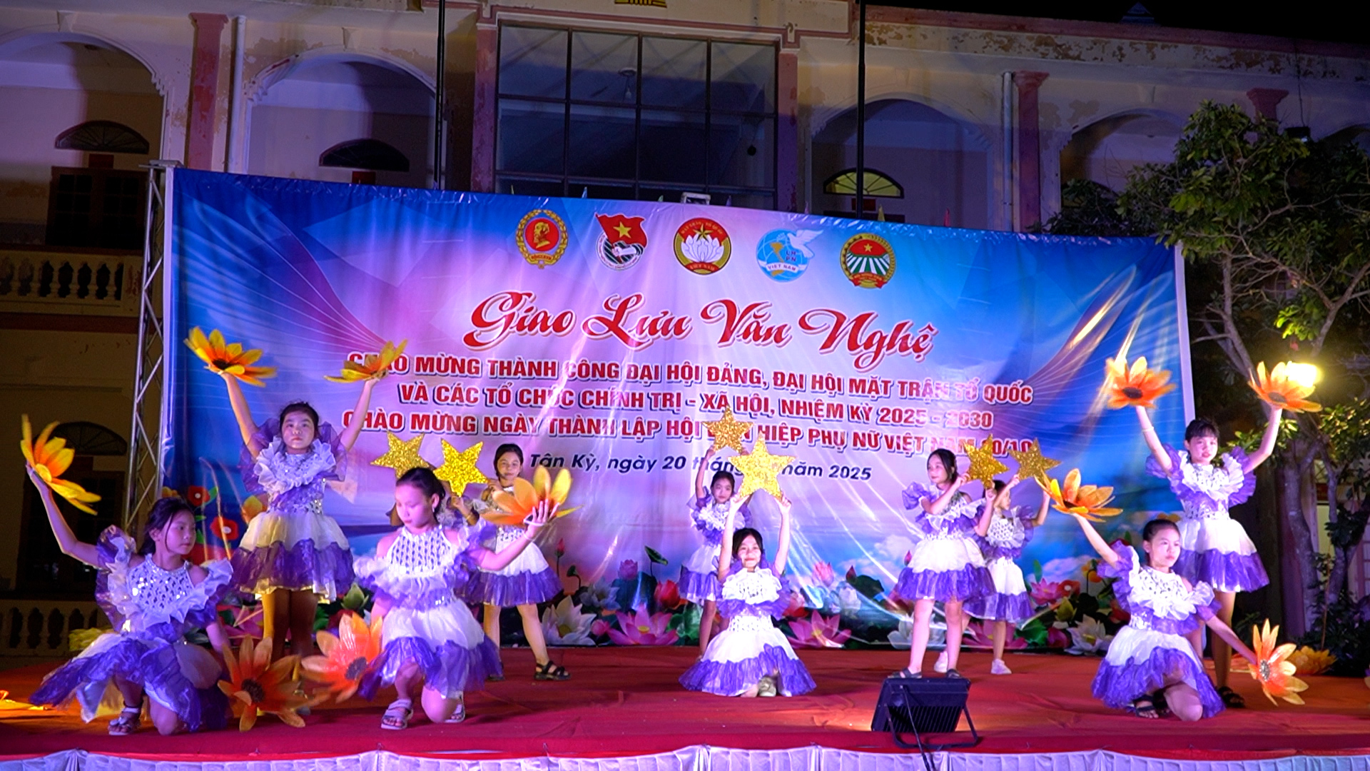 Đêm giao lưu văn nghệ diễn ra trong không khí vui tươi, phấn khởi, với nhiều tiết mục đặc sắc do các câu lạc bộ văn nghệ, đoàn viên, hội viên và nhân dân trong xã dàn dựng và biểu diễn. Các tiết mục ca, múa, nhạc đã tái hiện trang sử hào hùng của dân tộc, ca ngợi Đảng, Bác Hồ, tình yêu quê hương, đất nước và tinh thần đoàn kết, khát vọng xây dựng quê hương Tân Kỳ ngày càng giàu đẹp văn minh hiện đại.